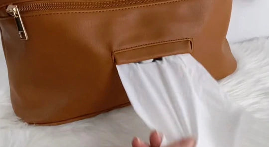 -One back pocket for nappies and wipes, with a flap for easy access wipes.
